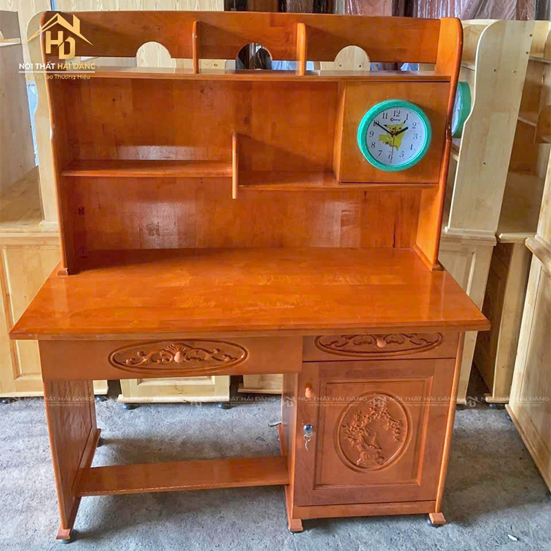*Mẫu 5: Bàn học sinh gỗ cao su có đồng hồ trang trí