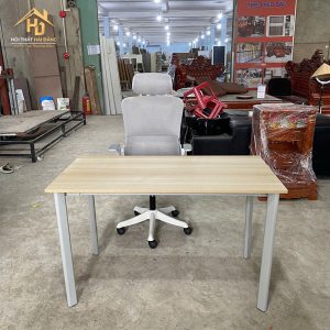 Thiết kế đơn giản với mặt bàn phẳng rộng rãi, đủ chỗ đặt laptop, tài liệu, máy in hoặc đồ dùng học tập. Chiều cao tiêu chuẩn giúp người dùng ngồi đúng tư thế, giảm mỏi lưng khi làm việc lâu. Màu vân gỗ sáng phối cùng chân sắt trắng mang đến cảm giác tươi mới, phù hợp với nhiều phong cách nội thất từ hiện đại, tối giản đến Scandinavian. Đây là sản phẩm phù hợp cho nhân viên văn phòng, sinh viên hoặc người làm việc tự do muốn có không gian gọn gàng và chuyên nghiệp.