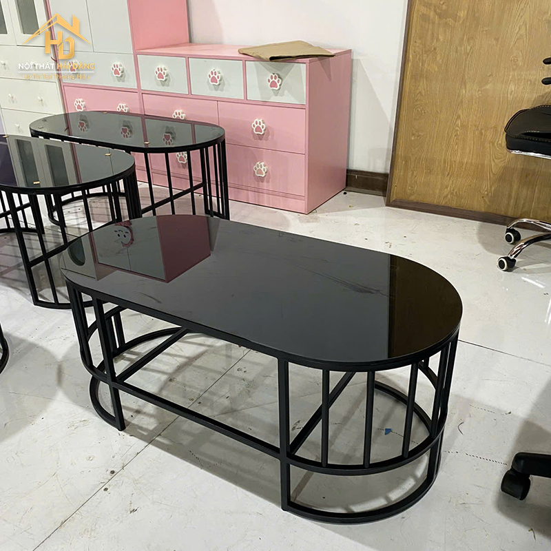 Bàn Sofa Mặt Kính Đen Khung Kim Loại Chắc Chắn