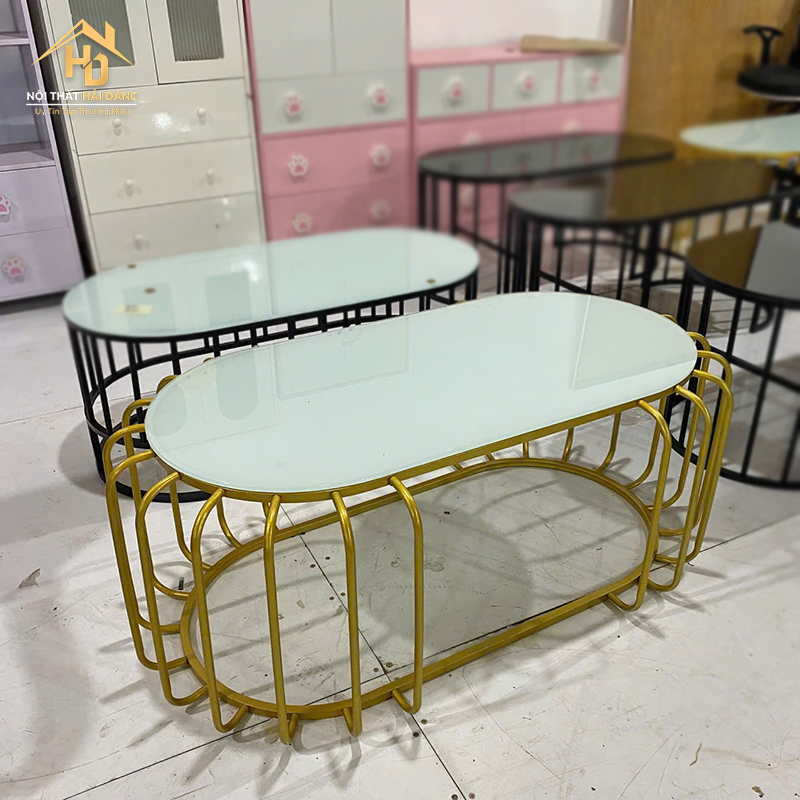 | Tên sản phẩm | Bàn Sofa Mặt Kính Oval Khung Vàng |