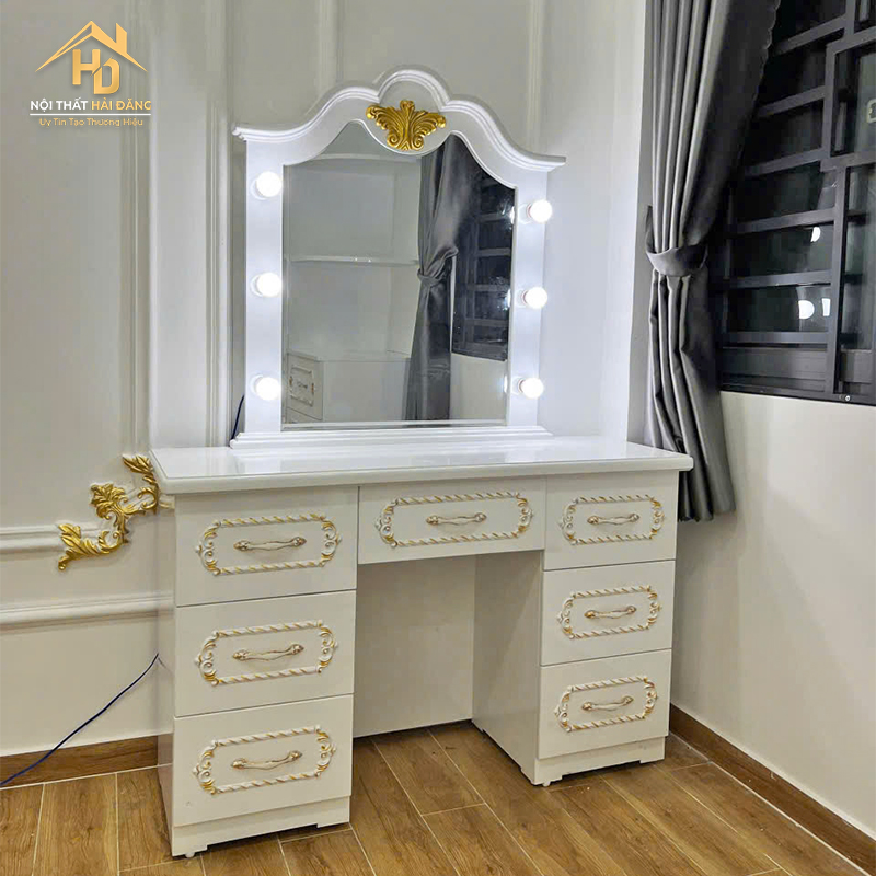 Bàn trang điểm đèn LED gương lớn của Nội Thất Hải Đăng là lựa chọn hợp lý cho những ai thường xuyên makeup, livestream hoặc cần góc ánh sáng tốt để soi gương rõ nét. Bạn có thể đến trực tiếp showroom để trải nghiệm thực tế hoặc nhắn Zalo để được báo giá nhanh và xem thêm nhiều mẫu bàn trang điểm hiện đại nhé.