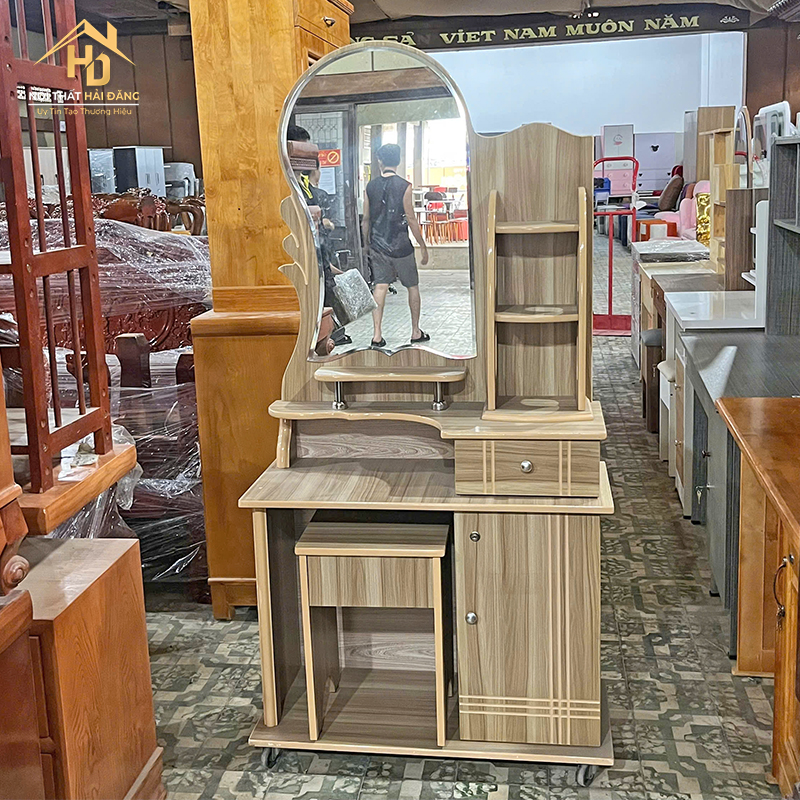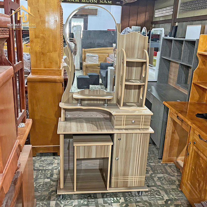 Bàn Trang Điểm Gỗ Gương Oval Có Hộc Tủ Tiện Lợi
