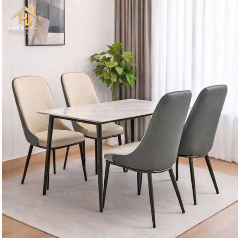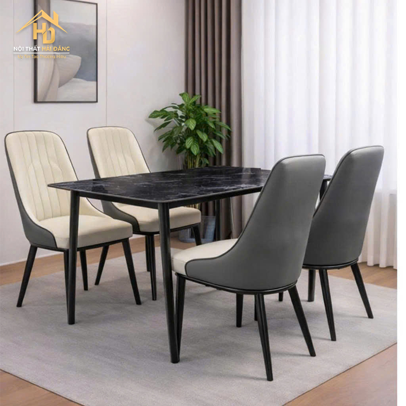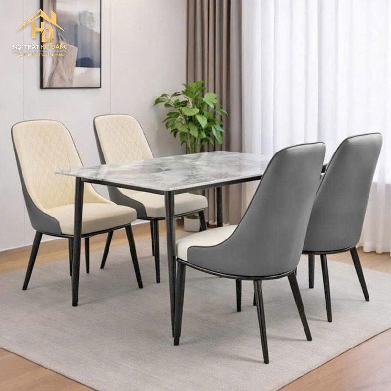 Bộ Bàn Ăn 1M2 Ghế Bọc Da Hiện Đại