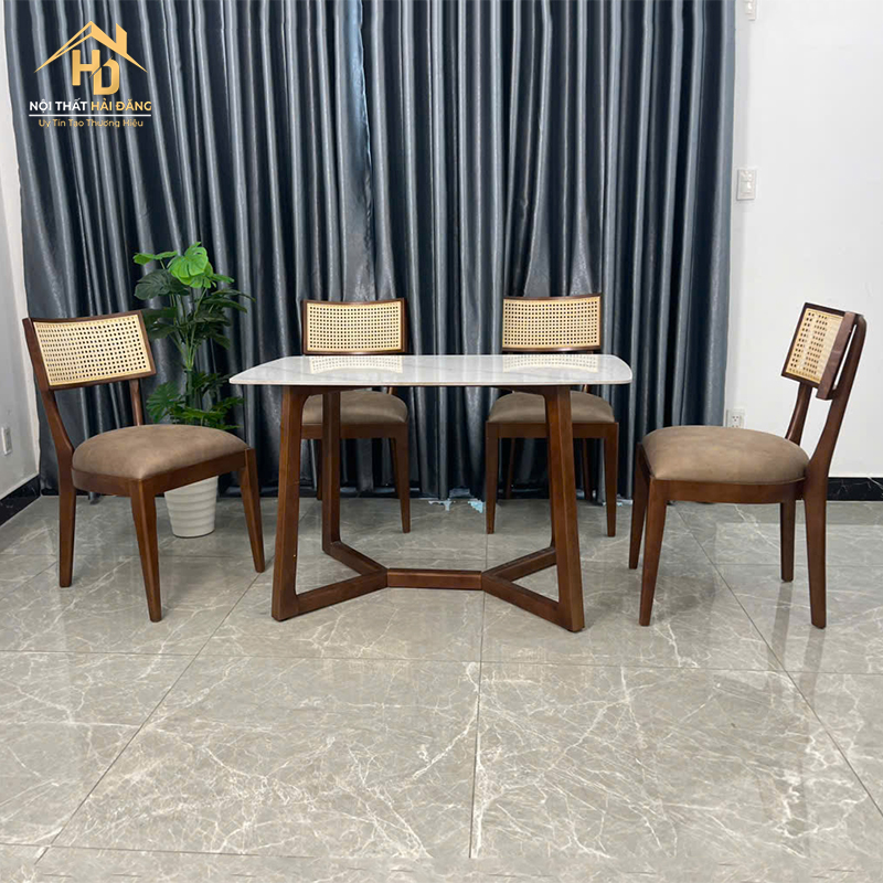 Bộ Bàn Ăn 4 Ghế Gỗ Lưng Mây (2 Màu)
