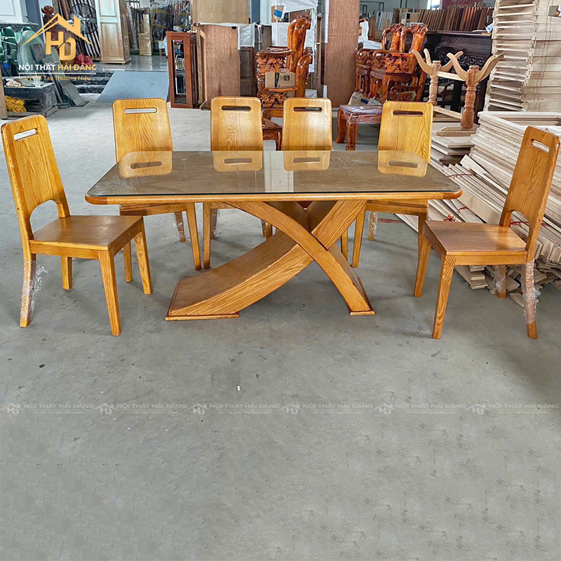 | Tên sản phẩm | Bộ Bàn Ăn Gỗ Chân Chữ X Mặt Kính Hiện Đại |