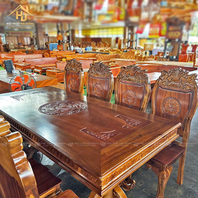 | Tên sản phẩm | Bộ Bàn Ăn Gỗ Tự Nhiên Chạm Khắc Hoa Văn Sang Trọng |