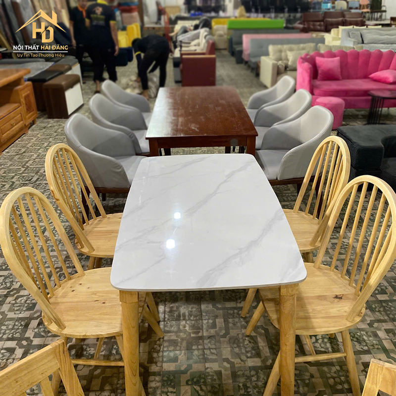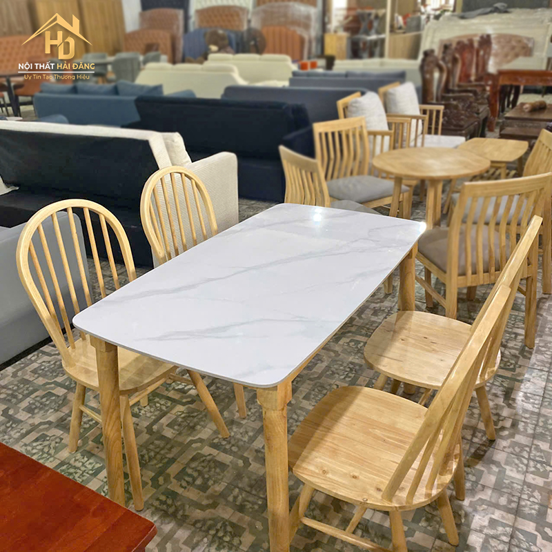 | Màu sắc | Mặt bàn vân đá, ghế gỗ tự nhiên |
