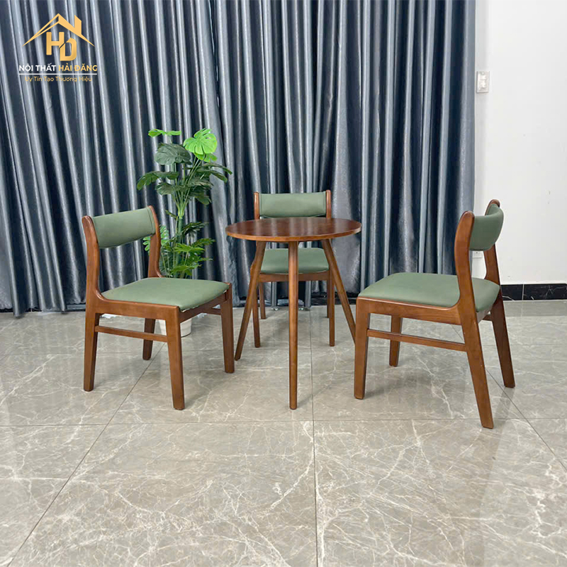 Bộ Bàn Cafe Tròn Ghế Bọc Nệm Xanh