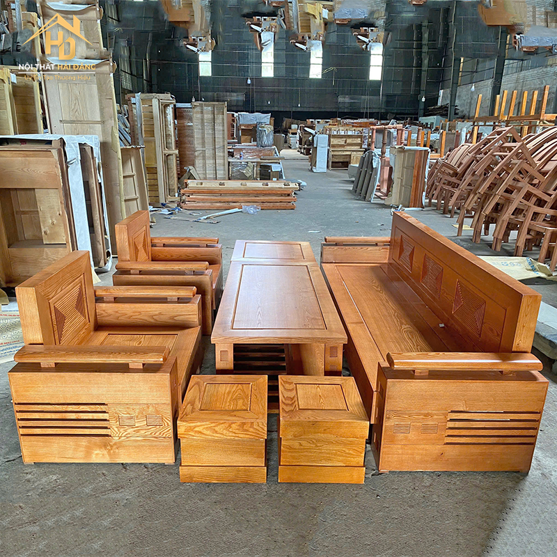 Bộ Bàn Ghế Salon Gỗ Sồi Đối Xứng