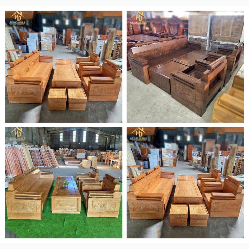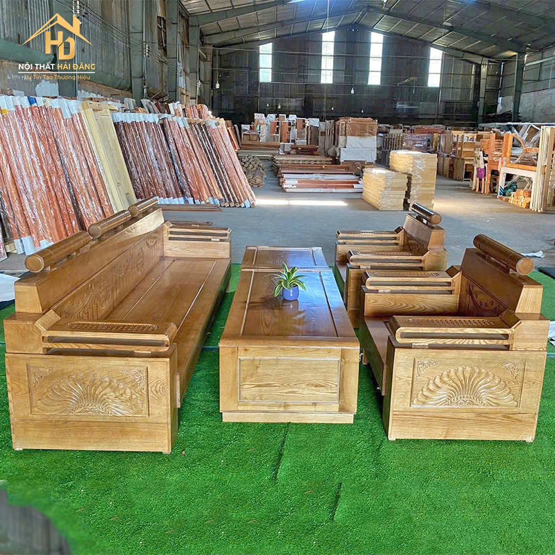 *Mẫu 2: Bộ salon gỗ sồi màu vàng
