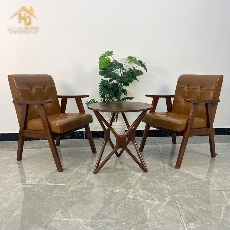 Ghế cafe bọc da nâu là lựa chọn lý tưởng cho các quán cafe, nhà hàng hay không gian sống hiện đại. Với phần đệm và tựa lưng bọc da cao cấp, ghế mang lại cảm giác ngồi thoải mái và dễ dàng vệ sinh. Khung ghế làm từ gỗ tự nhiên, chân ghế vững chắc, chịu lực tốt. Màu da nâu trang nhã và dễ dàng phối hợp với các loại bàn ghế khác. Ghế cafe bọc da không chỉ đẹp mắt mà còn bền bỉ, thích hợp cho không gian tiếp khách, quán cafe hay phòng chờ văn phòng.