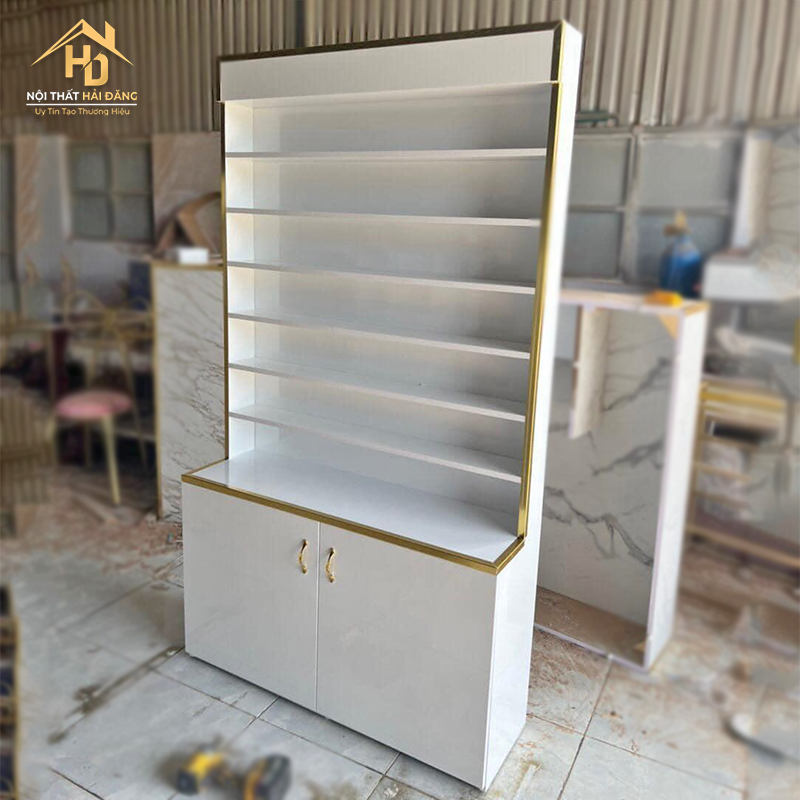 Ngoài ra, Nội Thất Hải Đăng còn nhận thiết kế kệ tủ trưng bày giá rẻ theo kích thước, số tầng và công năng. Bạn có thể đến xem trực tiếp tại xưởng hoặc liên hệ gọi điện, nhắn Zalo để được tư vấn chi tiết trước khi đặt làm.