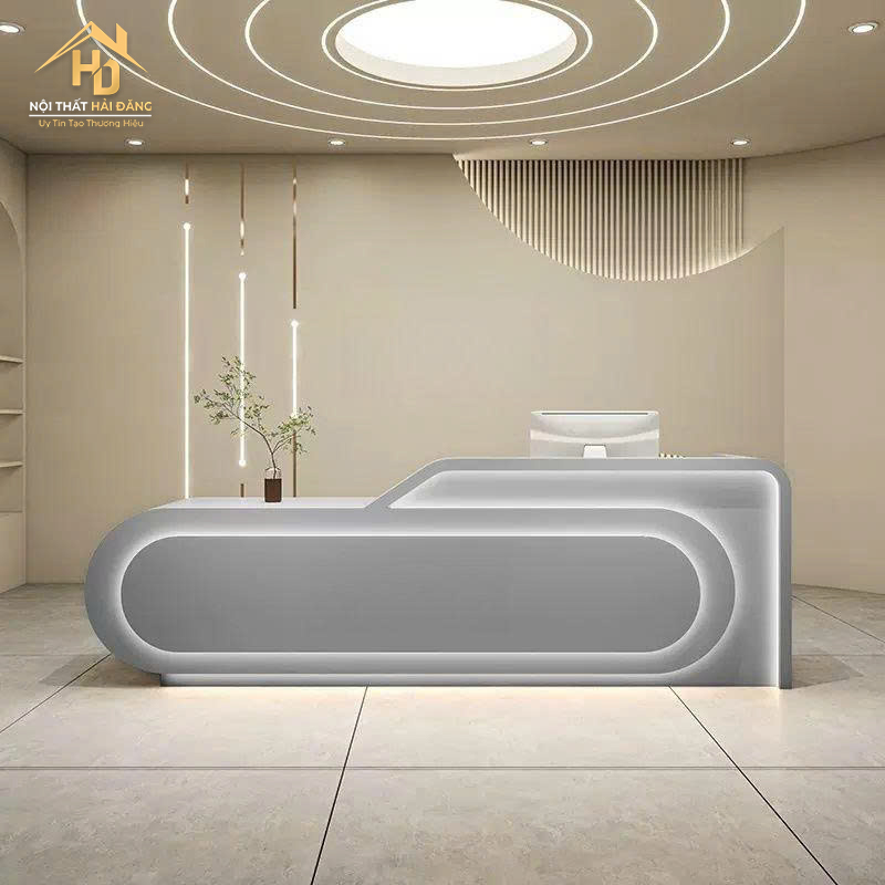 Quầy Lễ Tân Gỗ Bo Cong Phong Cách Hiện Đại