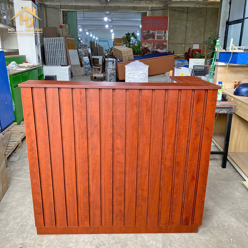 | Tên sản phẩm | Quầy Lễ Tân Gỗ Chữ L Sọc Nâu |