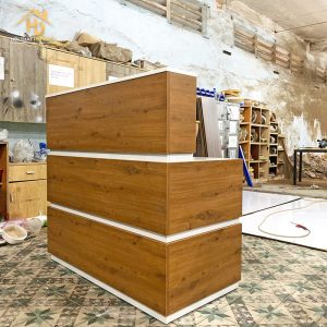 | Tên sản phẩm | Quầy Lễ Tân Gỗ Màu Vàng Phối Trắng Bóng |