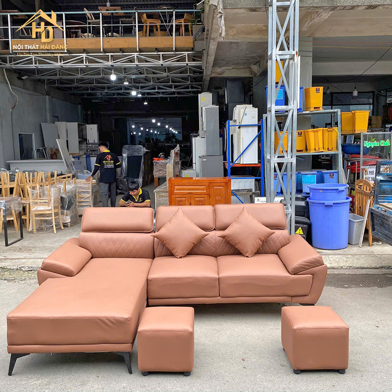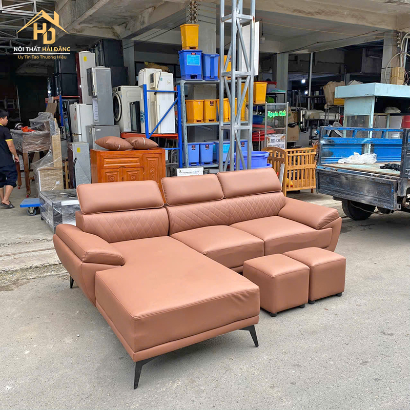 Sofa Da Góc L Kèm Đôn Vuông Hiện Đại