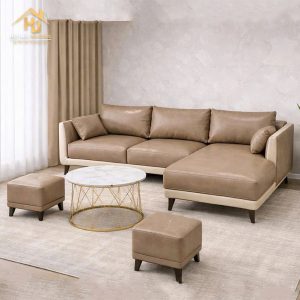 Sofa góc L phòng khách bọc da là lựa chọn phù hợp cho phòng khách cần không gian ngồi rộng rãi và thoải mái. Thiết kế góc giúp tận dụng diện tích hiệu quả, phù hợp với căn hộ hoặc nhà phố. Đệm ngồi êm ái kết hợp phần tựa lưng tạo cảm giác dễ chịu khi sử dụng lâu. Phần góc nằm giúp thư giãn hoặc nghỉ ngơi tiện lợi. Bộ sofa đi kèm đôn rời có thể linh hoạt sử dụng làm ghế phụ hoặc gác chân. Màu sắc đa dạng giúp dễ phối với nhiều phong cách nội thất khác nhau.