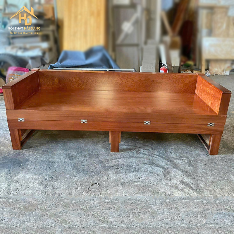 Sofa Sập Gỗ Xoan Đào Màu Nâu Đỏ Sang Trọng