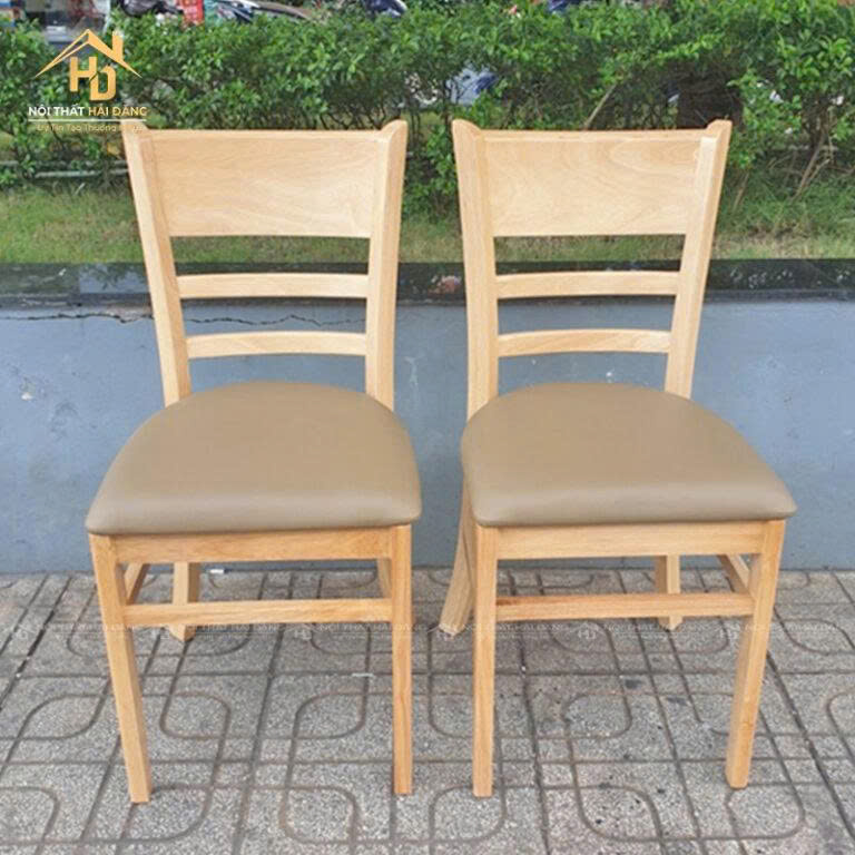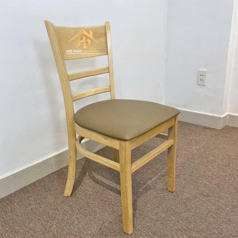 Ghế được làm từ chất liệu gỗ cao su tự nhiên đã qua xử lý chống cong vênh mối mọt, nệm bọc simili giả da. Với thiết kế mang xu hướng hiện đại, sản phẩm được phủ lớp sơn dầu chống nước chuyên biệt cho bàn ghế gỗ xuất khẩu cao cấp. Mẫu này có thiết kế trẻ trung, hiện đại và tính thẩm mỹ cao, mang đến cho không gian sự sang trọng, hiện đại.