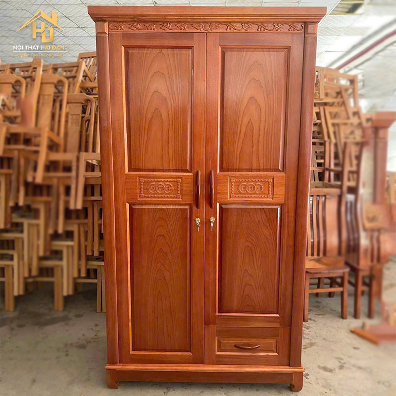 | Kết cấu | Tủ áo gỗ xoan 2 cánh, có hộc kéo, thanh treo, ngăn kệ |