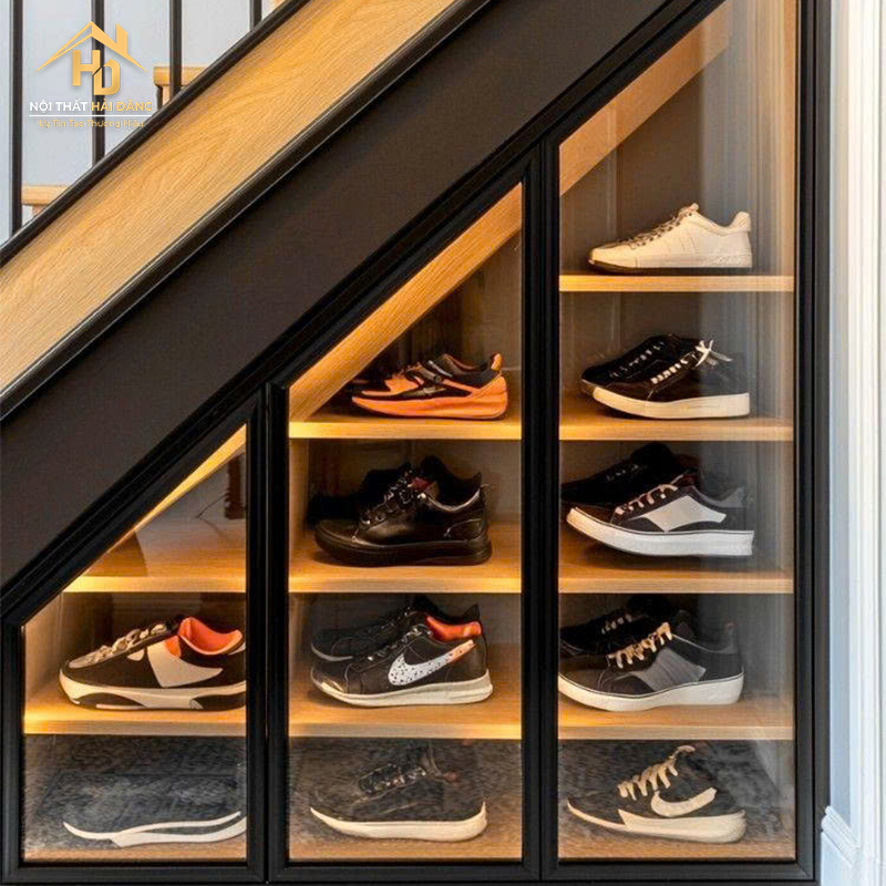 | Tên sản phẩm | Tủ Giày Gầm Cầu Thang Gỗ Phối Kính Sang Trọng |