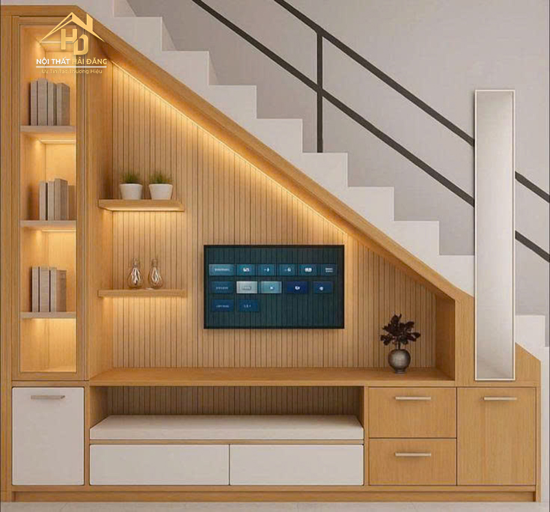 | Tên sản phẩm | Tủ Kệ Tivi Gầm Cầu Thang Gỗ Màu Sáng |