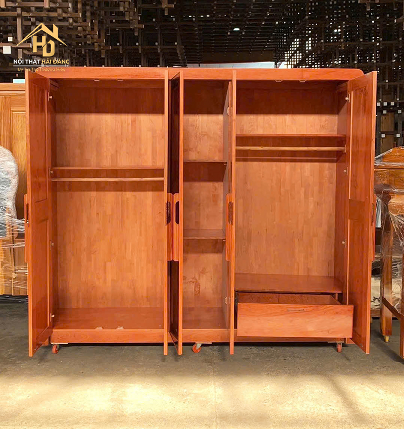 Tủ quần áo gỗ tự nhiên 5 cánh được thiết kế rộng rãi với các ngăn chia thông minh giúp bạn dễ dàng sắp xếp quần áo, chăn màn và phụ kiện. Phần giữa được tích hợp gương soi tiện lợi, tiết kiệm không gian cho phòng ngủ. Tủ có nhiều kệ và thanh treo đồ, phù hợp với nhiều loại quần áo khác nhau. Gỗ tự nhiên bền chắc, màu sắc đẹp và dễ phối với nội thất xung quanh. Ngăn kéo phía dưới giúp tăng khả năng lưu trữ. Đây là mẫu tủ lý tưởng cho gia đình đông người hoặc không gian phòng ngủ lớn.
