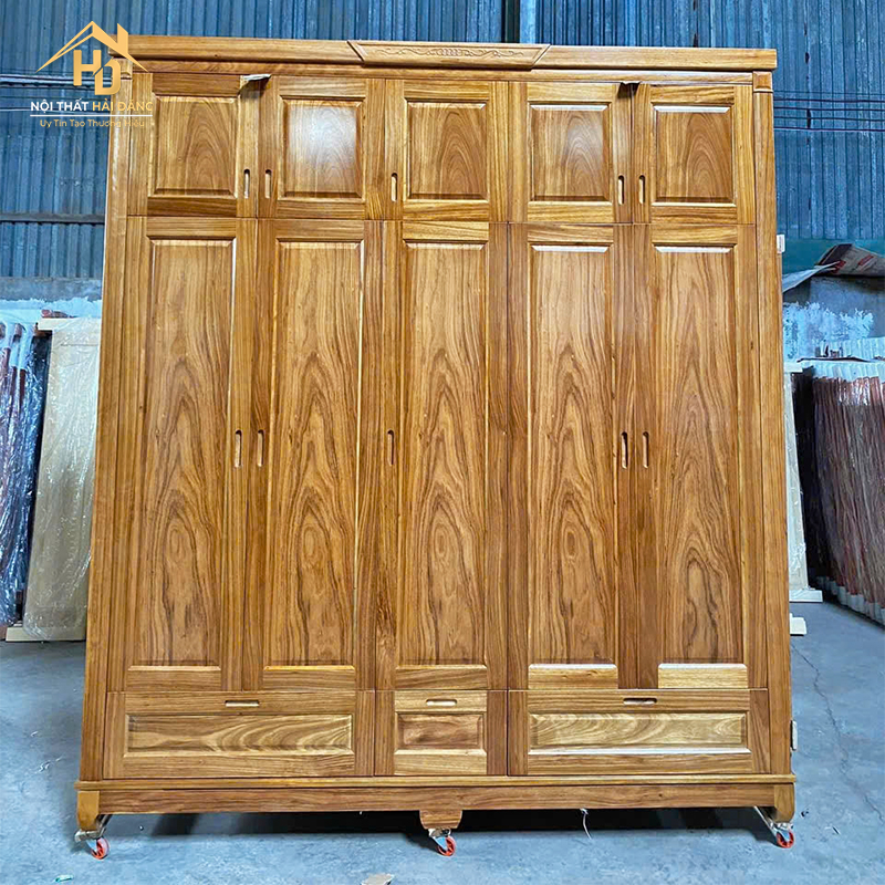 Tủ Quần Áo Gỗ Tự Nhiên Phủ Hương Xám 5 Cánh