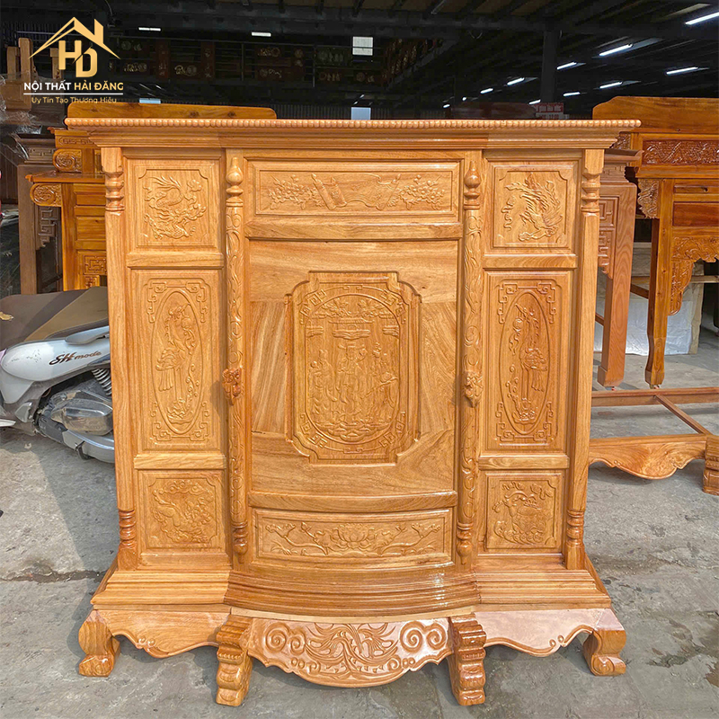 Tủ Thờ Gỗ Đỏ Chạm Hoa Văn Đẹp